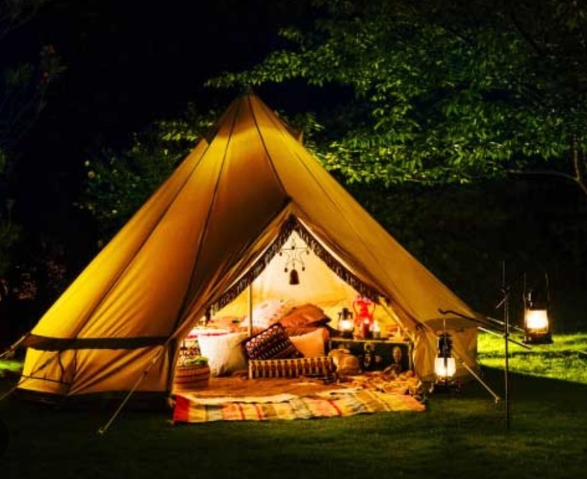 ※夕食時は、大型スクリーンで登山動画でも観ながら、テント内でお酒を楽しみましょう。