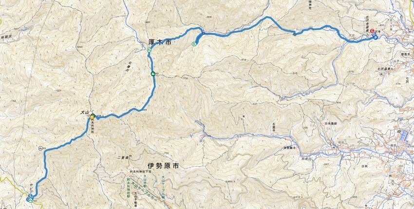 ヤビツ峠-大山-矢草ノ頭-唐沢峠-広沢寺温泉バス停 縦走コース